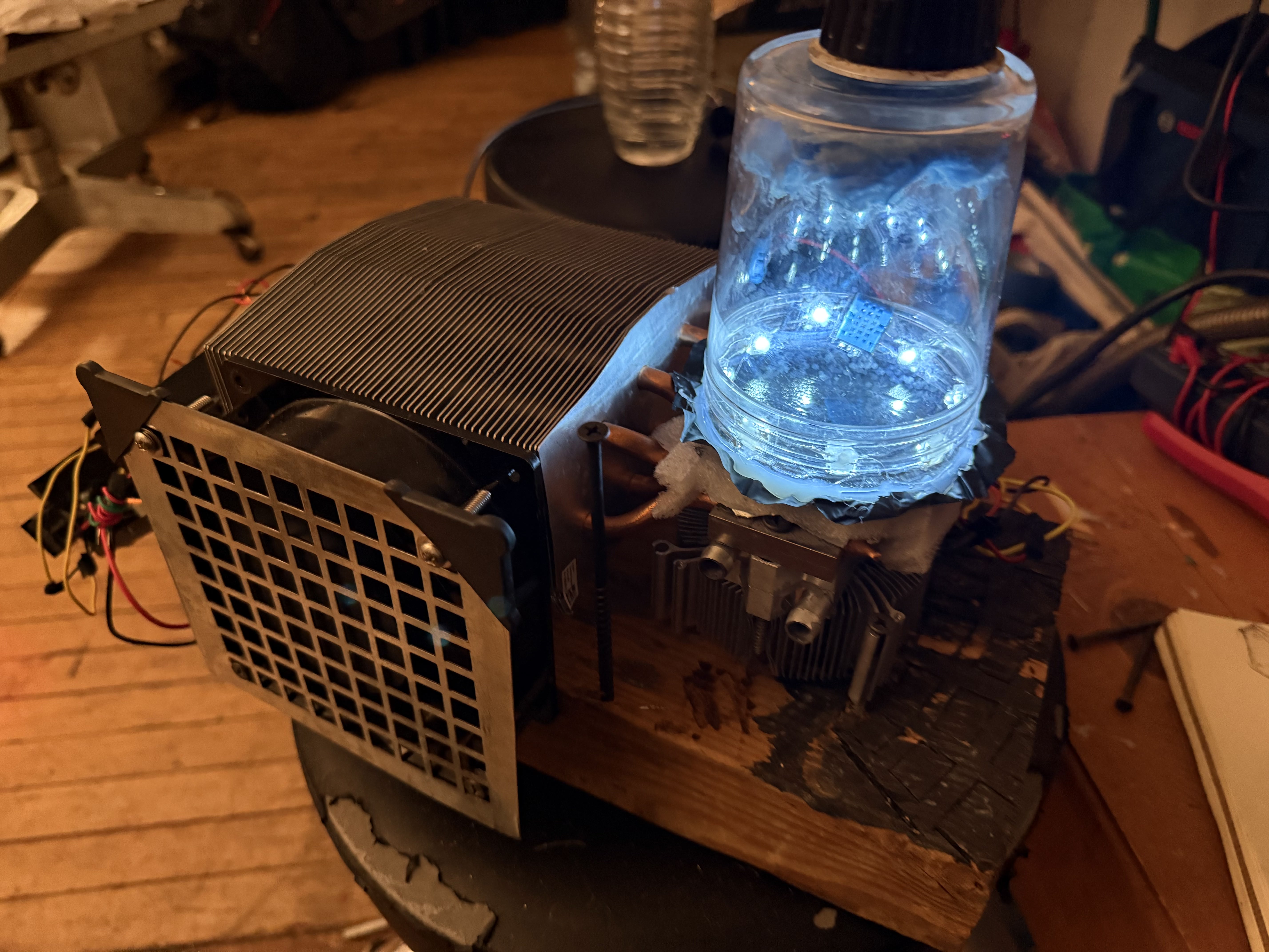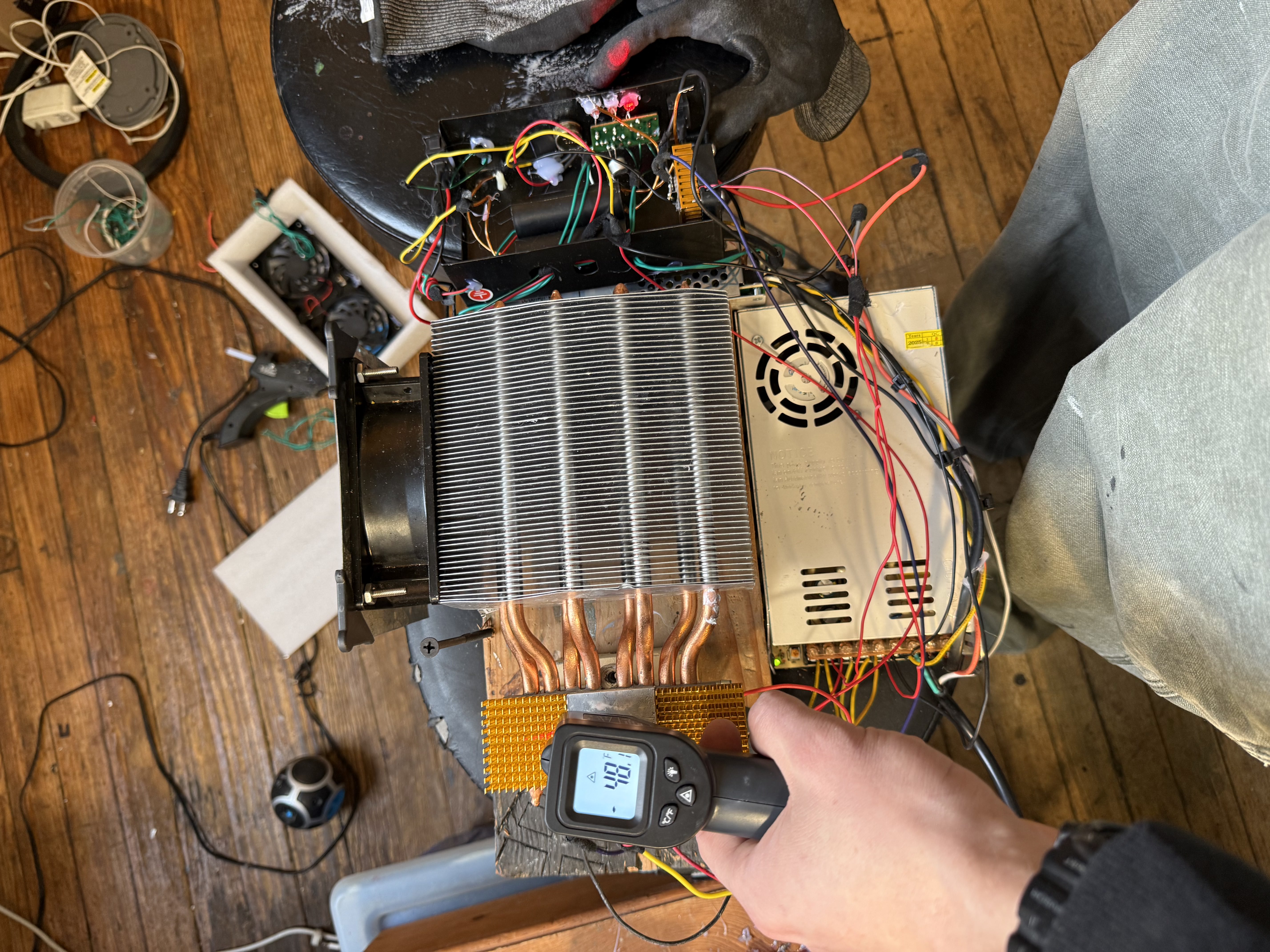 Unlike traditional chambers that require dry ice, this air-cooled version uses high-efficiency heat sinks and fans to dissipate heat from the hot side of the Peltier elements. When a charged particle passes through the chamber, it ionizes the vapor, leaving behind a visible trail of droplets—effectively making the invisible visible. I created this DIY scientific instrument with majority found and scrapped parts. The only items purchased were the OLED display, Arduino Nano, DHT11 Thermometer, and HV transformer. Some unique features of my build include a thermometer (DHT11) and display (OLED) which inform the user of temperature in both Celsius and Fareinheight. There are also three indicator lights (red LED) When 1/3 is on, this signifies main power. 2/3 on is the HV field (36kv) also indicated by the tiny spark gap on the right ("purple light") When 3/3 is on, this signifies the temperature is 32F or lower (freezing). Two small tracks can be witnessed in one of the videos, the long one is most likely a Beta particle AKA an electron (Identified by it's stream-line and long apearance). Another interesting aspect of my build is variable temperature (it can be adjust with the nob in the middle). The top peltier plate (1/3) is adjustable by potentiometer, which is connected to a MOSFET, which changes the temp via PWM. Hitting these extreme temps of at most -50F was a challenge, in order to accomplish this three peltier plates differing in required amperage were stacked on top of one-another. This is also called a thermal cascade. The top most plate,(1/3) adjustable via PWM runs at 2A-6A (2A being the most optimal). The middle plate (2/3) runs at 6A, and the bottom plate at 15A. This enables extreme cold to be reached.